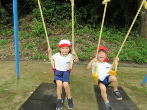 お部屋ではごっこ遊びやパズルなど。園庭ではブランコやきれいになった砂場を楽しみました♪