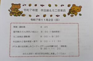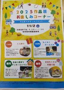 投稿日:2025.10.24カテゴリー:できごと,園からのお知らせ 11/2(日)は作品展✂️👦👧🖌️ 作品展の詳細をアップ致します😊✨ つぼみ組ちゃん、そして未就園児の小さいお友だち遊びに来て下さいね💕