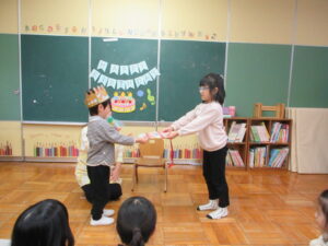 ドキドキしていたお名前も上手に言うことができ、やさしい松組のお姉さんからカードをもらいました!