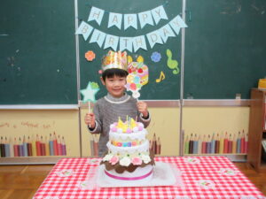 お誕生日のお歌の後はろうそくをふ~っと一息で消して・・ハイ ポーズ!