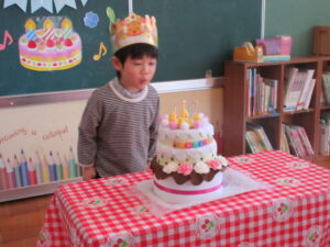 お誕生日のお歌の後はろうそくをふ~っと一息で消して・・ハイ ポーズ!