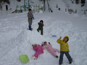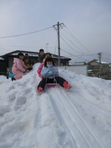 3学期の初め、雪がたーくさん 降ったので みんなで元気に遊びました!