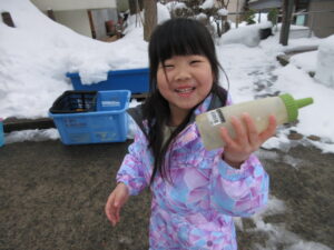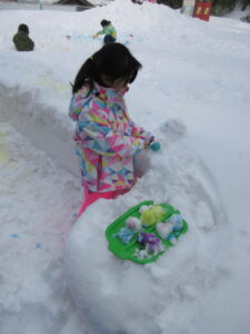 絵の具で雪に色を付けるときれいだったね~!かき氷屋さんみたい♪