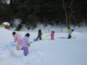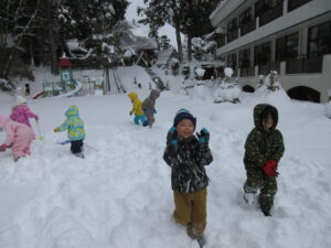 3学期の初め、雪がたーくさん 降ったので みんなで元気に遊びました!