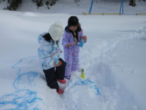 絵の具で雪に色を付けるときれいだったね~!かき氷屋さんみたい♪