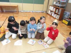 投稿日:2026.03.16カテゴリー:できごと 3月生まれのお誕生会🎂 3月生まれの誕生会をしました☆ 1年間自分の番が来るのを心待ちにしていた梅組のとってもかわいい女の子です♡ 大きな声で名前を言い、松組さんからカードをもらいました。 好きな食べ物、遊びなどをクイズにしてお友だちに当ててもらいました。 そのあとはみんなで楽しくおやつをたべました♪ ケーキを吹き消し、ニコニコ顔でハイ!ポーズ!! これからもすくすき大きくなってくださいね!